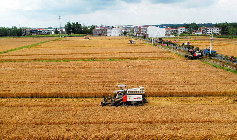 省“515”院士專家科技服務(wù)農(nóng)業(yè)產(chǎn)業(yè)鏈行動(協(xié)同推廣)團隊在曾都區(qū)萬店鎮(zhèn)黃家畈村創(chuàng)建高產(chǎn)優(yōu)質(zhì)高效小麥示范樣板50畝,應(yīng)用小麥機械精量勻播、鎮(zhèn)壓調(diào)控、雙盤開溝防漬、小麥專用緩控施肥、病蟲害綠色防控等技術(shù),目標畝產(chǎn)增加50公斤,每畝節(jié)約成本40至50元。圖為5月24日,小麥品種實打測產(chǎn)。 (隨州日報全媒記者 徐斌攝)