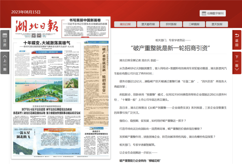 連日來(lái),湖北日?qǐng)?bào)推出《從破產(chǎn)到重整——企業(yè)調(diào)查實(shí)錄》系列報(bào)道,三家企業(yè)涅槃重生的故事引發(fā)廣泛關(guān)注。