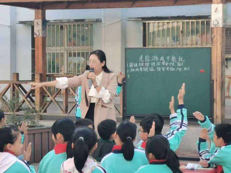 吳夢陽老師將教室主場地轉(zhuǎn)移室外,開展戶外教育。主講“生命安全教育”之《危險游戲不能玩》課堂以事實案例來梳理游戲中的危險隱患,與同學(xué)一起制定公約展開教學(xué),課堂上學(xué)生討論交流并自創(chuàng)游戲,梳理知識點,整堂課以生為主,師引導(dǎo)為輔,課堂緊湊,突破重難點。