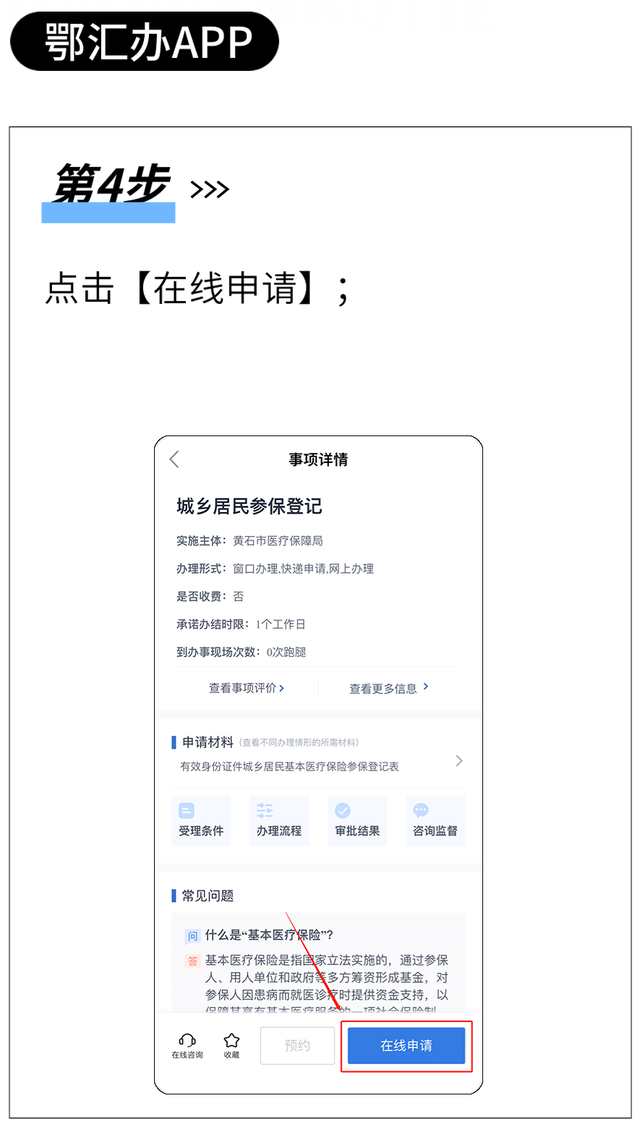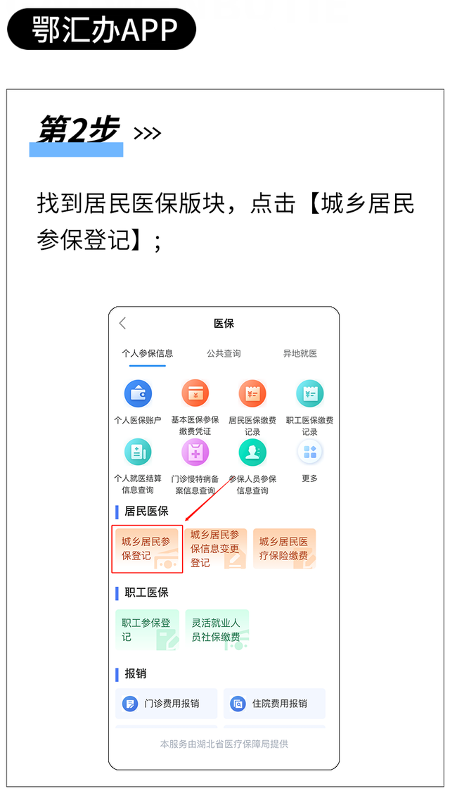 可通過(guò)鄂匯辦APP、“湖北醫(yī)療保障”微信小程序、“鄂醫(yī)保”支付寶小程序和湖北省政務(wù)服務(wù)網(wǎng)等線上渠道進(jìn)行參保登記,也可憑身份證在縣(市 區(qū))、鄉(xiāng)鎮(zhèn)(街道)、或村(社區(qū))政務(wù)服務(wù)窗口現(xiàn)場(chǎng)辦理。