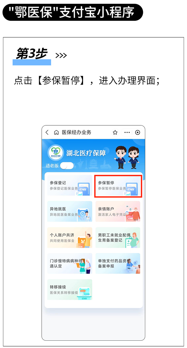 今年,新參保登記和參保暫停在原有的線上辦理渠道中,新增了“湖北醫(yī)療保障”微信小程序、“鄂醫(yī)保”支付寶小程序,更好地滿足參保群眾便捷辦事需求。