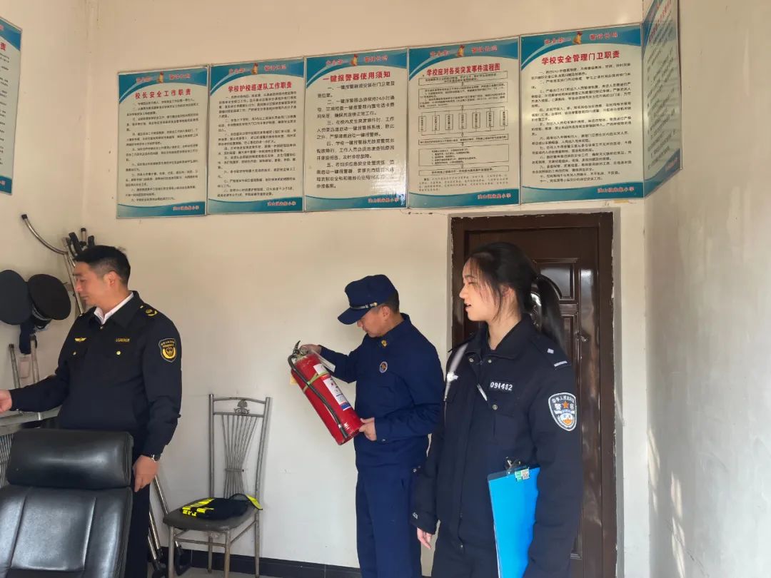 檢查組一行每到一校,都對校內(nèi)教學(xué)設(shè)施、操場運(yùn)動器材、食品衛(wèi)生安全、消防安全等進(jìn)行全面、細(xì)致的安全隱患排查。對于重點(diǎn)區(qū)域和要害部位,特別是周邊環(huán)境、交通安全、社會治安、用電設(shè)施等進(jìn)行仔細(xì)檢查,并對檢查出來的安全隱患及時記錄,明確專人負(fù)責(zé)、限時整改。同時,檢查組對學(xué)校落實(shí)校園安全防范措施、門衛(wèi)保安值班值守、人員出入登記等日常安全管理進(jìn)行視導(dǎo),并現(xiàn)場演示一鍵報警器反應(yīng)情況。