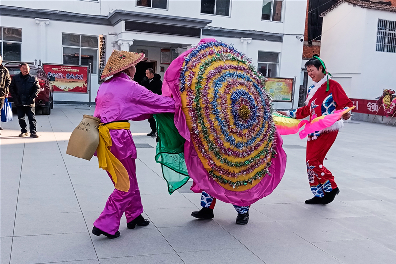 曾都經(jīng)濟(jì)開(kāi)發(fā)區(qū)兩水溝社區(qū)組織舞蹈隊(duì)進(jìn)商戶送祝福