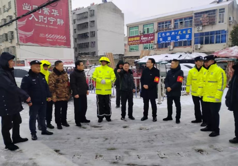 來到露天農(nóng)貿(mào)市場,周劍一行積極與攤販老板溝通交流,了解市場物價(jià)情況。在了解到平?jīng)毦集鎮(zhèn)上坡段因道路結(jié)冰發(fā)生擁堵,一邊指揮執(zhí)勤人員、一線民警及鎮(zhèn)應(yīng)急救援隊(duì)及時(shí)疏導(dǎo)交通,一邊緊急調(diào)度鎮(zhèn)應(yīng)急分隊(duì)潑灑融雪劑3噸,和履帶式推土機(jī)對結(jié)冰道路進(jìn)行除冰作業(yè),一邊帶頭安撫滯留司乘人員情緒,不到一個(gè)小時(shí)就將道路疏通,得到群眾和過往車輛高度贊揚(yáng)。