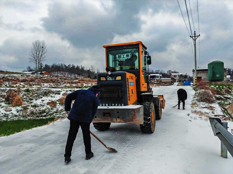 2月21日,曾都區(qū)何店鎮(zhèn)共出動鏟車10余輛、撒布融雪劑10余噸、發(fā)動志愿者100余人開展除雪作業(yè)。 (隨州日報全媒記者張琴攝)