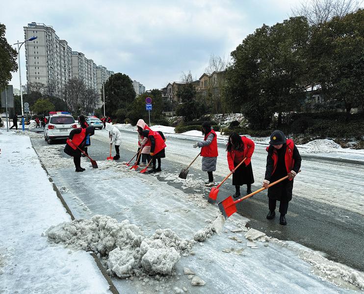 曾都區(qū)涢水街道風(fēng)光社區(qū)聞雪而動,為轄區(qū)居民的安全出行和正常生活保駕護(hù)航。(隨州日報(bào)全媒記者林超攝)