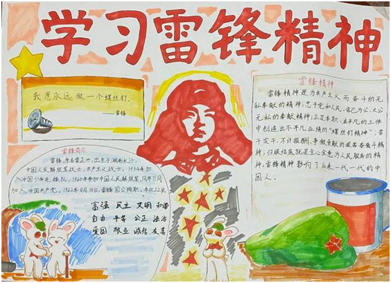 手抄報內(nèi)容豐富,形式新穎,或整理雷鋒故事,或挖掘精神實質(zhì),或表達個人理想,小朋友們通過自己手中的彩筆,畫出了自己心中的雷鋒,表達了對雷鋒精神的景仰,展示了少年心中的雷鋒夢。
