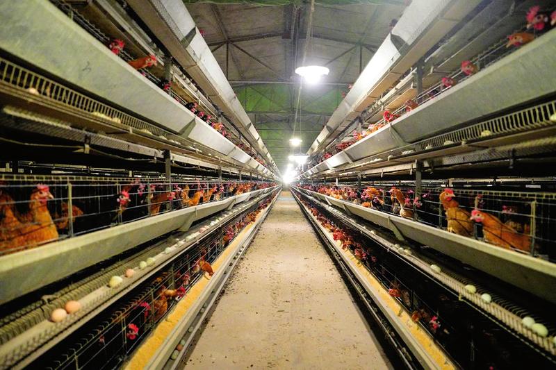 近日,走進(jìn)曾都區(qū)萬店鎮(zhèn)雙河村蛋雞養(yǎng)殖基地,只見雞舍里一排排標(biāo)準(zhǔn)化養(yǎng)殖籠架排列有序,一只只蛋雞爭先啄食,自動化傳輸系統(tǒng)將雞蛋直接傳送到分揀區(qū),工人們忙著將雞蛋裝箱打包。