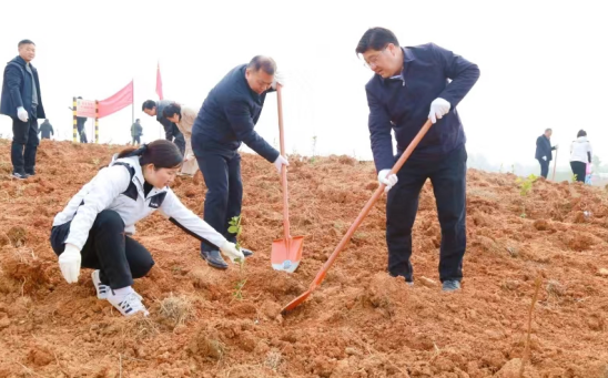 人勤春來(lái)早,植綠正當(dāng)時(shí)。3月7日,在第46個(gè)植樹(shù)節(jié)即將到來(lái)之際,隨州市“四大家”領(lǐng)導(dǎo)、市直有關(guān)部門(mén)負(fù)責(zé)人、市自然資源機(jī)關(guān)干部來(lái)到隨縣環(huán)潭鎮(zhèn)九里崗村,與當(dāng)?shù)馗刹咳罕娨黄痖_(kāi)展義務(wù)植樹(shù)活動(dòng),為美麗隨州建設(shè)再添新綠,營(yíng)造人人參與、全民動(dòng)手植綠、愛(ài)綠、護(hù)綠的濃厚氛圍。綠意萌動(dòng)、萬(wàn)物勃發(fā)。市領(lǐng)導(dǎo)同干部群眾一起拿著鐵鍬、水桶等工具,扶正苗木、揮鍬鏟土、澆水定根,200余人合力栽植油茶4200余株,通過(guò)此次義務(wù)植樹(shù)活動(dòng)有力助推了我市春季造林綠化步伐。