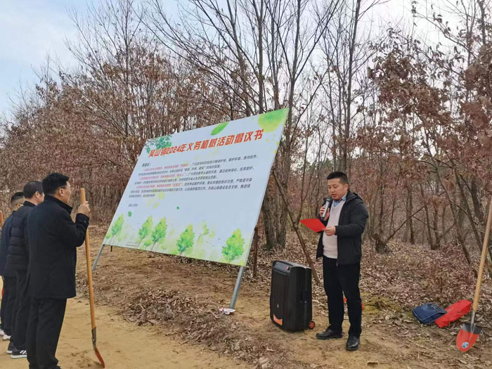 鎮(zhèn)黨委書記何佑鵬宣布吳山鎮(zhèn)2024年義務(wù)植樹活動啟動并致開幕詞。