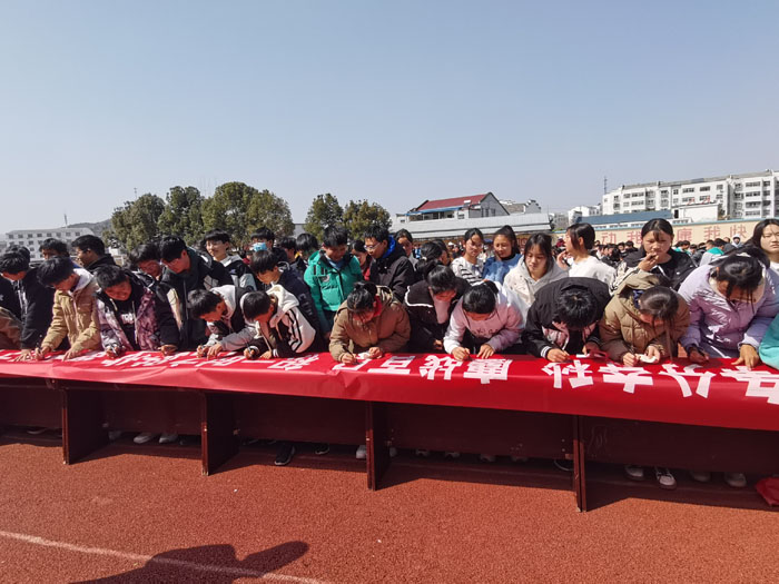 由校長和分管教學(xué)副校長一起揭示中考100天倒計時牌,并為各班班長分發(fā)中考倒計時計時牌,最后,九年級全體同學(xué)在各班勵志標語橫幅上莊嚴簽名,亮明了自己沖刺中考的"軍令狀"。