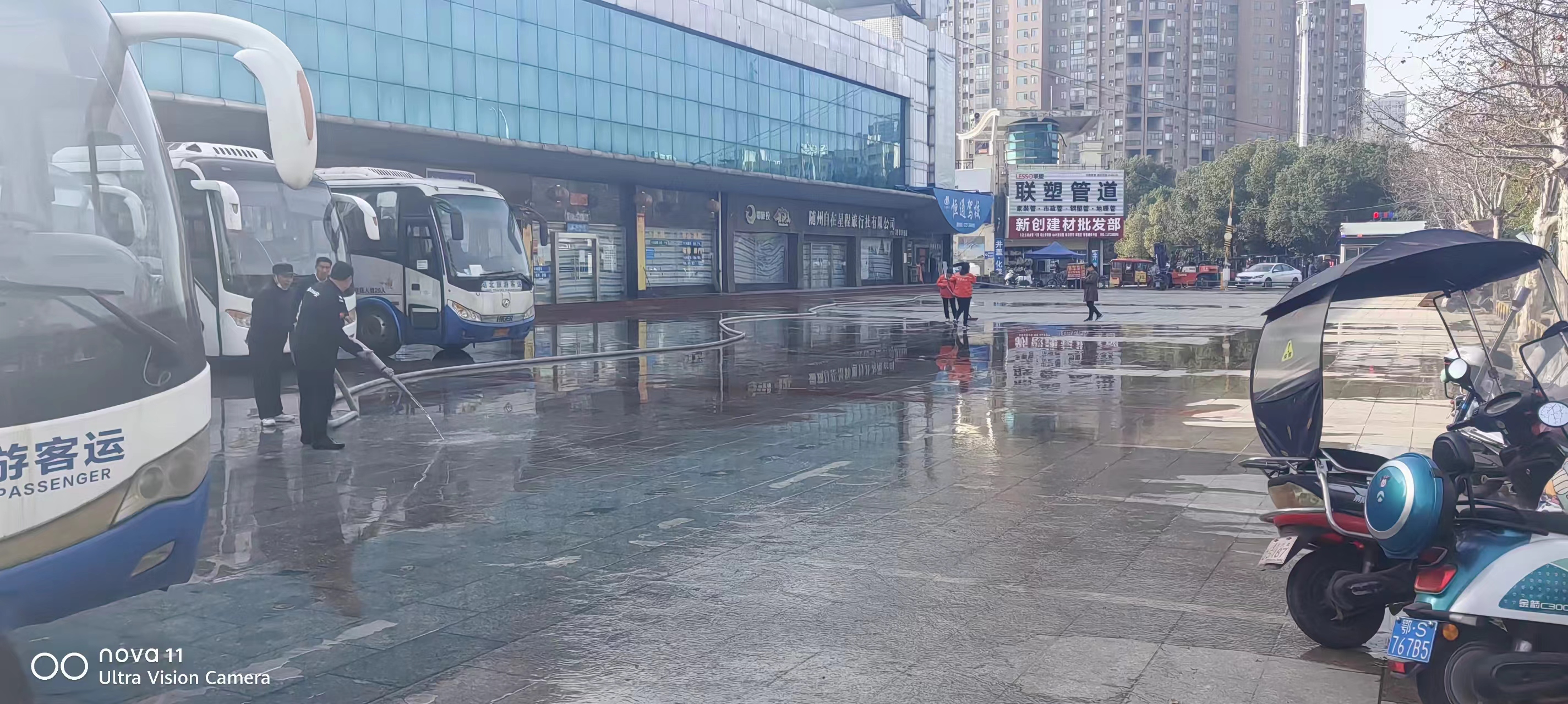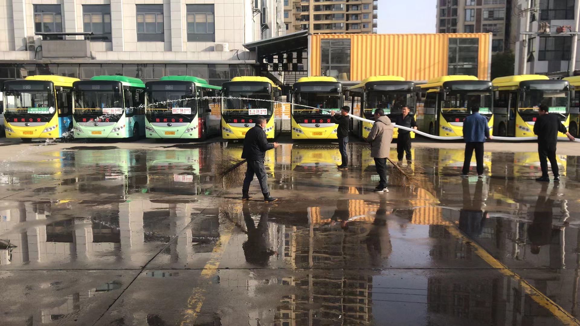 公交公司組織人員對(duì)公司大院地面進(jìn)行沖洗,制作簡(jiǎn)式公交站牌28塊。
