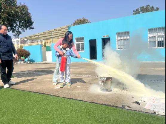 撤離到安全地點(diǎn)后,各班教師及時(shí)清點(diǎn)班級(jí)人數(shù),有序上報(bào)安全疏散人數(shù),同時(shí)開展消防安全知識(shí)大課堂。安保人員潘強(qiáng)向大家現(xiàn)場(chǎng)演示干粉滅火器“一拔、二握、三瞄、四掃”的使用方法,師幼們通過現(xiàn)場(chǎng)觀摩及實(shí)際操作,進(jìn)一步強(qiáng)化了消防安全意識(shí),提高了熟練使用消防器材的能力。