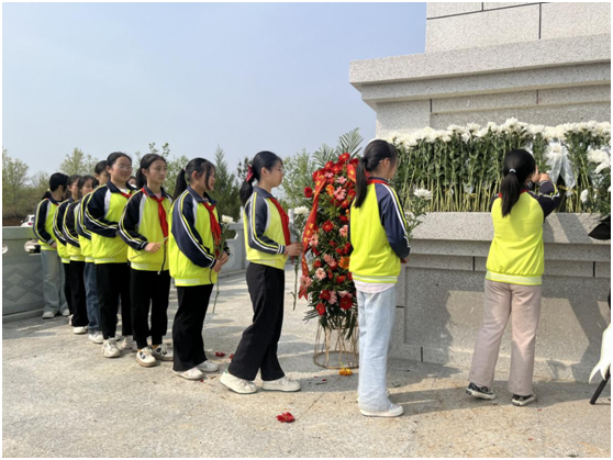 全體師生在碑前列隊(duì)肅立。頷首默哀,沉痛悼念為革命事業(yè)英勇獻(xiàn)身的革命先烈,表達(dá)對(duì)先烈的崇高敬仰和深切緬懷。 在寧?kù)o肅穆的氣氛中,黨員代表向英烈敬獻(xiàn)花籃,由校領(lǐng)導(dǎo)整理挽聯(lián),全體人員依次到紀(jì)念碑前敬獻(xiàn)鮮花并鞠躬致意,撫今追昔銘記英烈榮光,追思緬懷賡續(xù)紅色血脈。