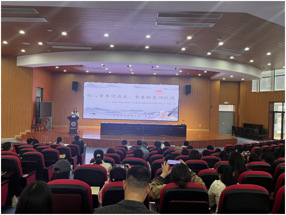 曾都區(qū)白云湖小學曾云老師對課題《核心素養(yǎng)導向下書香校園建設的實踐研究》進行開題報告陳述。