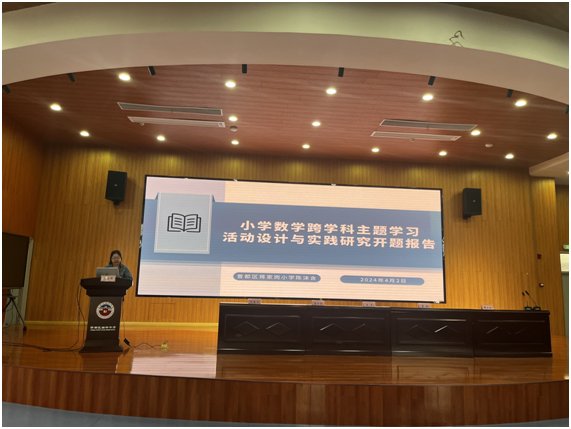 曾都區(qū)東城蔣家崗小學陳沫含老師對課題《小學數(shù)學跨學科主題學習活動設計與實踐研究》進行開題報告陳述。