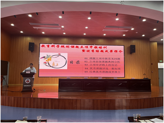 開題點撥啟新航,研思致遠向未來。市教研室教科辦周祥主任從課題立項申報常見問題、立項省級課題典例分析、立項審評路上的寄語、優(yōu)秀課題評選一般標準、經(jīng)典優(yōu)秀課題成果推介這五個方面進行了《課題立項申報技巧申報》講座,為各個課題組成員進一步明晰了課題的研究思路,為下一步研究工作的開展指明了方向。