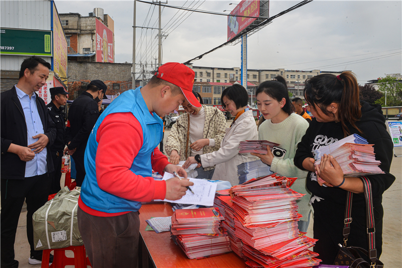 4月10日,曾都區(qū)淅河鎮(zhèn)人民政府在該鎮(zhèn)九通農(nóng)貿(mào)市場前舉辦憲法宣傳和掃黃打非宣傳咨詢服務(wù)活動,現(xiàn)場發(fā)放宣傳資料1萬多份。淅河鎮(zhèn)司法所長孫建軍等工作人員向群眾講行政復(fù)議法和憲法,讓人民知法懂法,受到了群眾的稱贊。(通訊員 王濤攝)