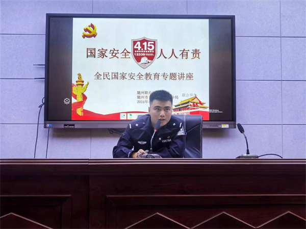 4月15日是第九個(gè)“全民國(guó)家安全教育日”,為切實(shí)提高師生的國(guó)家安全意識(shí),加強(qiáng)國(guó)家安全法治宣傳,營(yíng)造維護(hù)國(guó)家安全的濃厚氛圍,涢水派出所在隨州職業(yè)技術(shù)學(xué)院開展“全民國(guó)家安全教育日”普法宣傳活動(dòng),為在校師生開展國(guó)家安全知識(shí)講座。