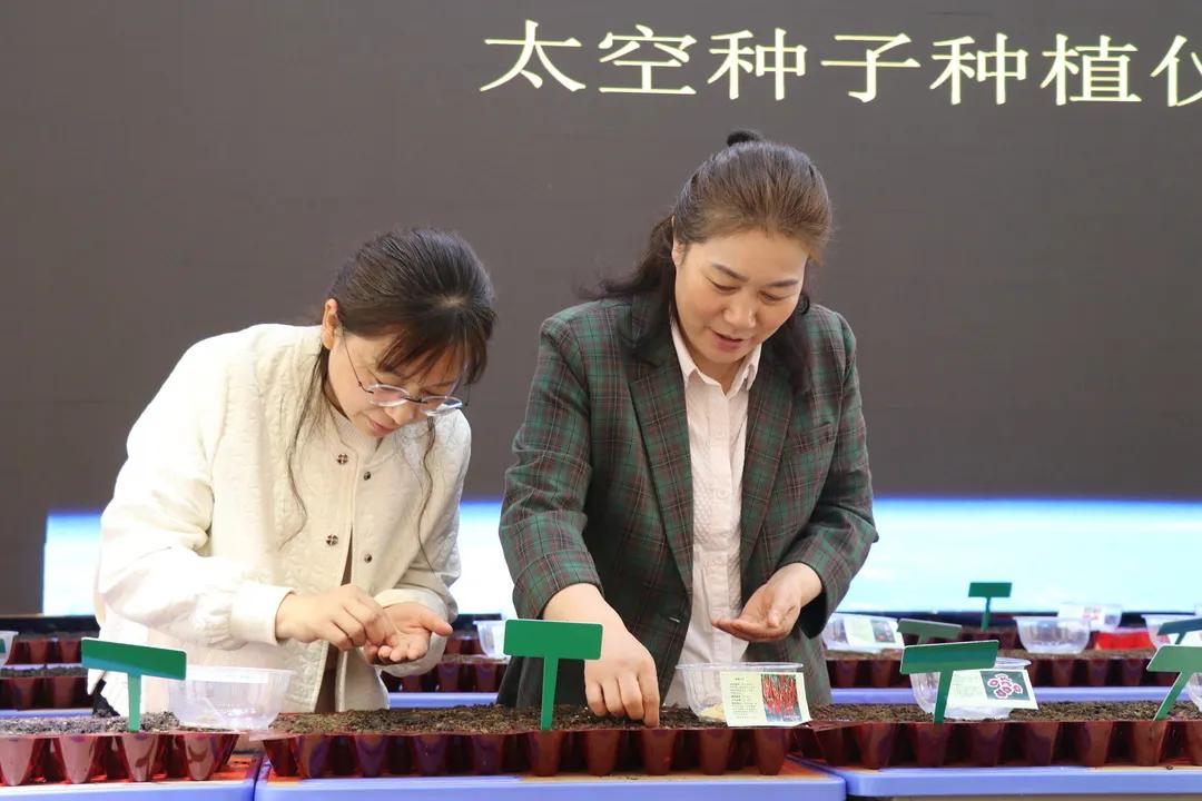 黃會琦和敖艷梅親自演示,進(jìn)行太空種子的種植示范。懷揣一顆科學(xué)夢,共同播下第一粒太空種子。一雙雙小手,掌心捧著的是一顆顆小小的種子,但親手種下的是一個(gè)個(gè)大大的期待。同學(xué)們一個(gè)個(gè)小心翼翼,但臉上洋溢的都是快樂的笑容。