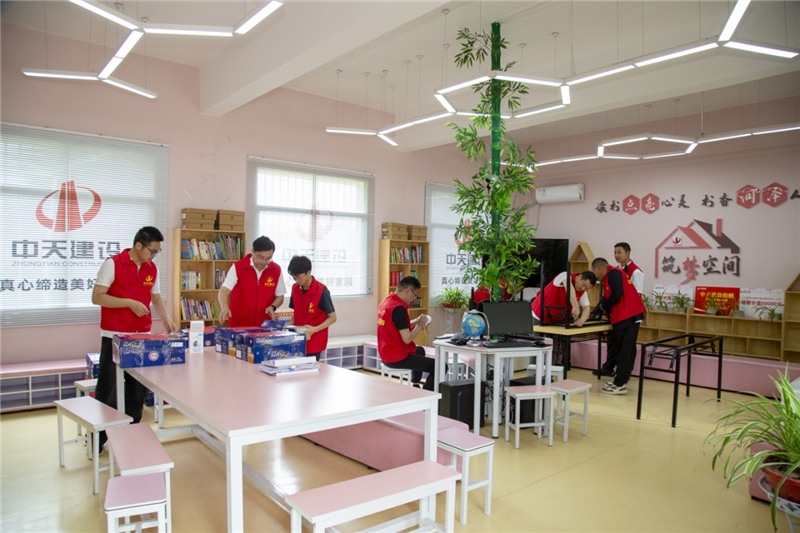 捐贈現(xiàn)場,中天集團愛心人士把一箱箱圖書抬到閱覽室,然后拆包、分揀。文學(xué)、科普、藝術(shù)、漫畫……不一會兒,散發(fā)著墨香的新書分類擺上書架,在“讀書點亮心靈,書香潤澤人生”標(biāo)語的映襯下熠熠生輝。每一本圖書的傳遞,都是夢想的接力;每一次書籍的共享,都是溫暖的漫溢。工作人員同時將捐贈的監(jiān)控設(shè)備、圖書閱覽書桌安裝到位。