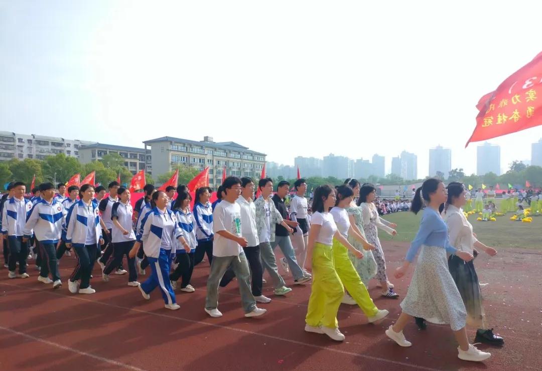 音樂與運(yùn)動交織,奏響青春的樂章!首先是隨州一中國旗護(hù)衛(wèi)隊(duì)、彩旗方隊(duì)和啦啦操方隊(duì)依次入場,向大家展示了一中學(xué)子昂揚(yáng)向上的風(fēng)采。緊接著是高二和高一年級班級方隊(duì)入場,他們以青春之活力展現(xiàn)班級文化,在一分鐘的展示時間里,精彩的舞龍舞獅獲校領(lǐng)導(dǎo)提筆點(diǎn)睛,紛紛喝彩。在班級方隊(duì)就位后,啦啦操方隊(duì)表演在音樂歌聲中開始,由教師和學(xué)生領(lǐng)唱,帶領(lǐng)啦啦操方隊(duì)翩躚起舞,歌曲與舞蹈交織,共顯青春的氣息。教師的參與更是讓氣氛達(dá)到了高潮,師生齊心,將在賽場上不斷挑戰(zhàn)自我、超越自我、也將通過這場運(yùn)動盛會爭創(chuàng)新的佳績,培養(yǎng)團(tuán)結(jié)互助的品格,譜寫賽場和生活上最華美的樂章。