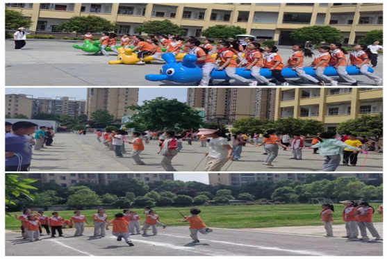 此次運(yùn)動會共設(shè)置集體比賽項(xiàng)目《陽光男孩,陽光女孩》韻律操表演,跳繩比賽、50米迎面接力……參賽選手個個精神飽滿、斗志昂揚(yáng),奮力拼搏,勇爭第一;啦啦隊(duì)不斷地為運(yùn)動員們吶喊助威。趣味運(yùn)動項(xiàng)目“毛毛蟲大作戰(zhàn)”,“流水作業(yè)”、“籃球繞障礙物接力”等等,啦啦隊(duì)不斷地為運(yùn)動員們吶喊助威,一聲聲此起彼伏的歡呼聲、喝彩聲、加油聲不絕于耳。教師趣味賽“零食大作戰(zhàn),隨著裁判員一聲令下,參賽班主任鉚足全力,爭先恐后,向“零食堆”飛奔而去。他們心系學(xué)生,都在為同學(xué)們的期盼而拼搏,在同學(xué)們的加油助威聲來回狂奔。這是師生之間的雙向奔赴。吶喊與歡呼交融,笑聲與掌聲呼應(yīng),校園成為一片歡騰的海洋!