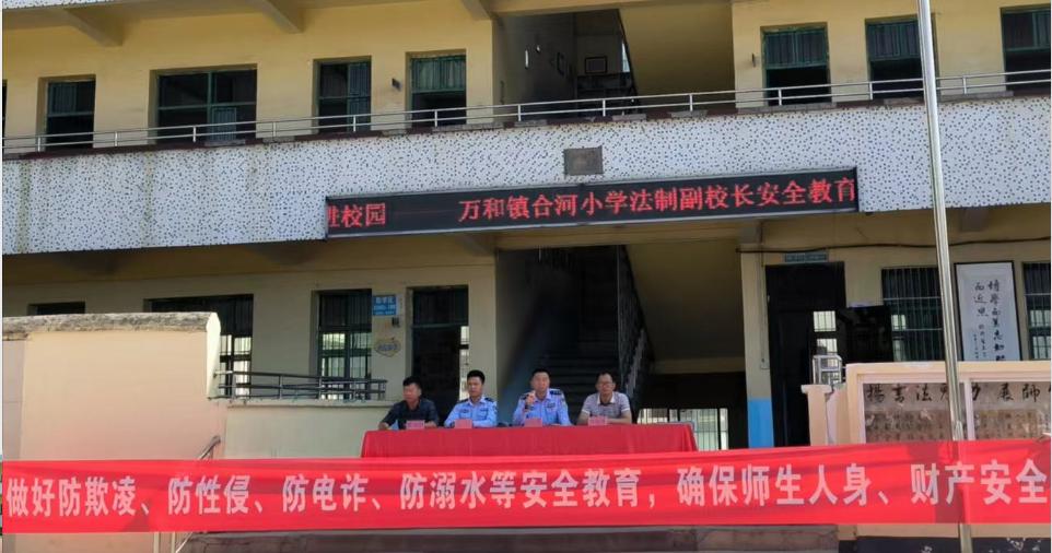 隨縣公安局萬和派出所教導(dǎo)員田江廳警官作為萬和鎮(zhèn)合河小學(xué)法制副校長多次到校對師生進(jìn)行法制安全教育,反響熱烈,效果顯著,師生受益匪淺。