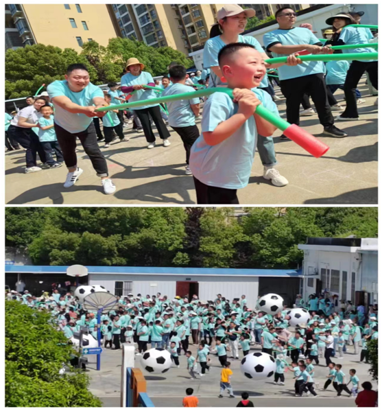 親子運動會上,孩子們進行了“奧林匹克”的全能運動大循環(huán)比拼。小朋友們在“真假美猴王”“大循環(huán)跳圈圈”等項目的比拼中勇敢向前,不畏艱難,獲得了可喜可賀的好成績!翱鞓纷闱"的親子游戲讓孩子們興奮不已,個個臉上洋溢著幸福的笑容!翱罩凶闱颉备菍⑦\動會的氣氛推向高潮,孩子們賣力的為爸爸媽媽加油助威,比賽進行的非常激烈。一根長長的繩索連接的是大家的團結與友愛,一陣陣吶喊歡呼與掌聲將化作無窮的動力,一聲聲嘹亮的口號傳遞著家校合作、共同守望孩子們成長的最強聲音,此刻美好的畫面定格成幼兒園里最美麗的一道風景線。