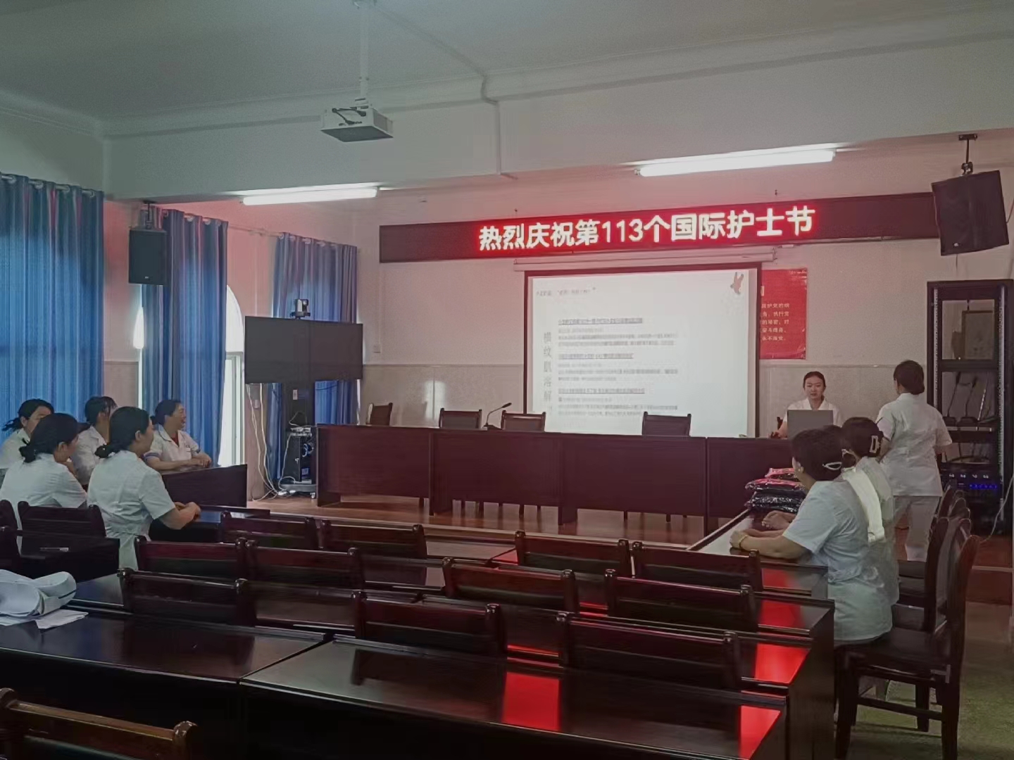 護(hù)士通過生動(dòng)的講解普及健康知識(shí),提高了大家對(duì)健康問題的認(rèn)識(shí)和重視程度。宣講競(jìng)賽結(jié)束后護(hù)理部主任帶領(lǐng)大家背誦南丁格爾誓詞,“余謹(jǐn)以至誠,于上帝及會(huì)眾面前宣誓:“終身純潔,忠貞職守,盡力提高護(hù)理之標(biāo)準(zhǔn);勿為有損之事,勿取服或故用有害之藥;慎守病人家務(wù)及秘密,竭誠協(xié)助醫(yī)生之診治,務(wù)謀病者之福利。謹(jǐn)誓!”激勵(lì)全體護(hù)士們始終保持初心,用愛心、耐心、責(zé)任心為患者提供優(yōu)質(zhì)的護(hù)理服務(wù)。