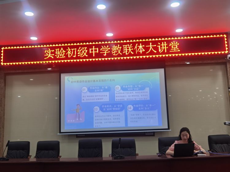 實驗初級中學(xué)英語教研組長石文與大家分享有關(guān)“雙減”政策下的英語高效作業(yè)設(shè)計。作業(yè)作為課堂教學(xué)延伸的重要組成部分,不僅關(guān)系到整體教學(xué)的效果,而且影響著人才培養(yǎng)的質(zhì)量。