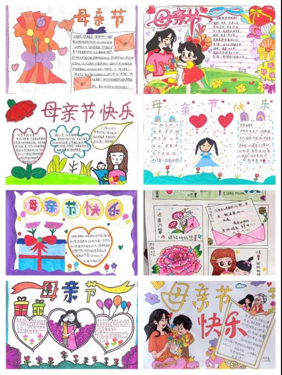 稚子手中筆,小手繪心意。同學(xué)們積極收集素材、構(gòu)思排版,從版面設(shè)計、文字書寫、圖案繪畫等方面進行了巧妙的設(shè)計,呈現(xiàn)了一幅幅主題鮮明、內(nèi)容豐富、色彩明麗、版面勻稱的精美手抄報。一幅幅精美的作品飽含著對母親深深的愛意,抒發(fā)著對母親的感激之情,訴說著自己對母親的愛與祝福。