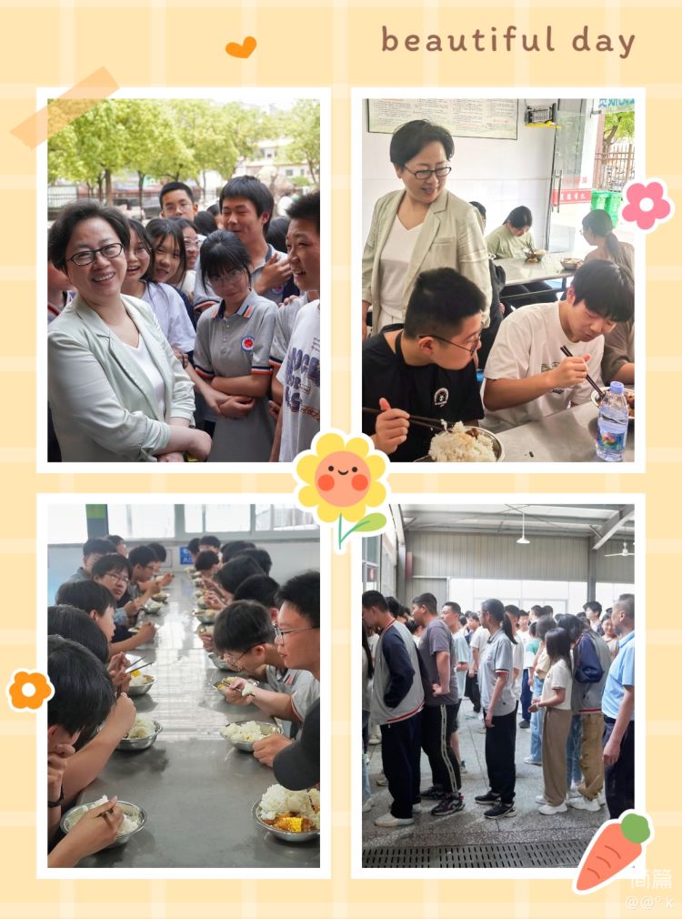 學(xué)生有序排隊(duì)就餐,校長徐正艷與學(xué)生親切交流,傾聽學(xué)生們的心聲。