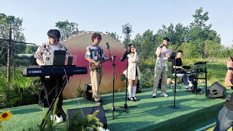在音樂會現(xiàn)場,來自隨州的“肆井樂隊”和來自襄陽的“奧利奧樂隊”用音樂表達了青春的活力,撲面而來的音浪直擊心靈,讓人陶醉、令人動容,絢麗多彩的舞臺燈光、星星點點的裝飾燈帶、彩燈閃爍的打卡造型、燈火熠熠的天幕帳篷與觀眾手中揮舞的熒光棒交相輝映,將音樂會唯美浪漫的氛圍拉滿。