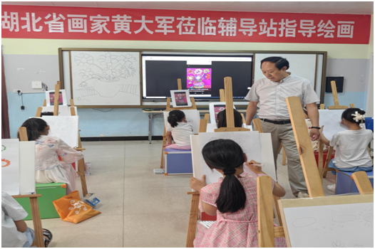 在79屆學(xué)子中,湖北省畫家黃大軍走進(jìn)學(xué)!扮姽庳懶M廨o導(dǎo)站”,耐心為孩子們進(jìn)行繪畫指導(dǎo),通過講解、示范等方法,教授同學(xué)們現(xiàn)場(chǎng)作畫《美麗的花瓶》,孩子們收獲滿滿!