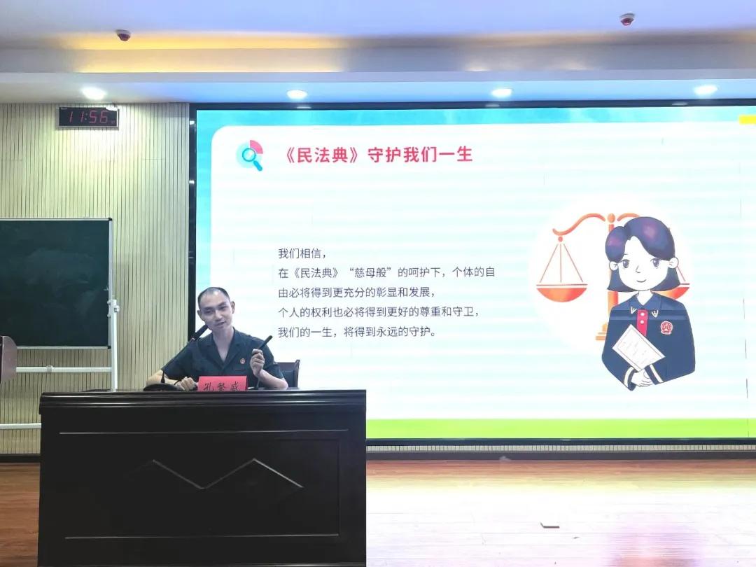 活動中,隨縣法院執(zhí)行局干警孔繁盛結(jié)合典型違法犯罪案例,從青少年當前的生活環(huán)境、思想動態(tài)為切入點,講解校園欺凌、校園安全和其他安全三個方面的民法典知識,并在現(xiàn)場與同學(xué)們進行法律知識有獎問答互動,引導(dǎo)同學(xué)們通過合法途徑處理矛盾糾紛,運用法律武器捍衛(wèi)自身合法權(quán)益。
