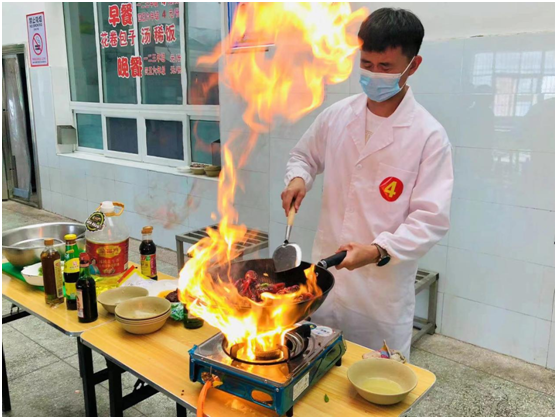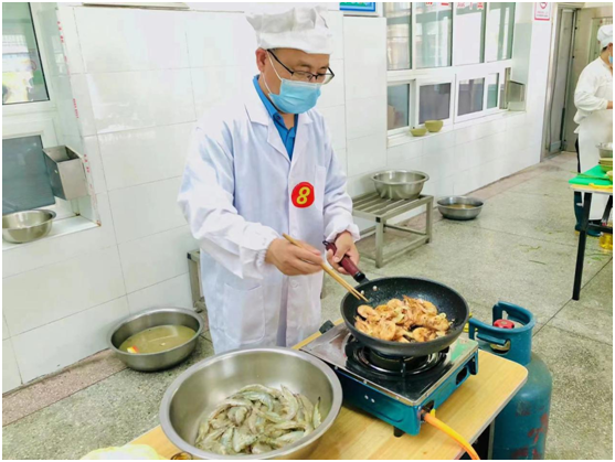 學(xué)校后勤部門根據(jù)參賽教師的菜譜,提前準(zhǔn)備了各式新鮮食材,只待教職工們“大顯身手”。比賽現(xiàn)場熱火朝天,教師們各顯身手,亮出絕活。蒸、煮、炒、包,毫不含糊,精細的動作,專注的眼神,點滴間透露著“廚神”們精湛的技藝。慧心調(diào)美味,巧手做佳肴,教師們利用最普通的食材,通過精心的烹制,一道道風(fēng)味十足的美食映入眼簾,隔著屏幕都讓人垂涎三尺。