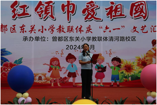 隨州新聞網(wǎng)訊 (通訊員郭定方)仲夏時(shí)光爭(zhēng)明媚,繽紛六一載歡欣。為傳承紅色精神,培養(yǎng)孩子們愛黨愛國(guó)愛校園的情感,優(yōu)化教育發(fā)展環(huán)境,迎接“六一”國(guó)際兒童節(jié)的到來(lái),豐富兒童的節(jié)日生活,5月31日上午,區(qū)東關(guān)小學(xué)教聯(lián)體在清河路校區(qū)開展了以“紅領(lǐng)巾愛祖國(guó)”為主題的慶“六一”文藝匯演活動(dòng)。