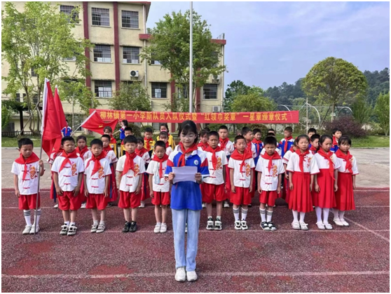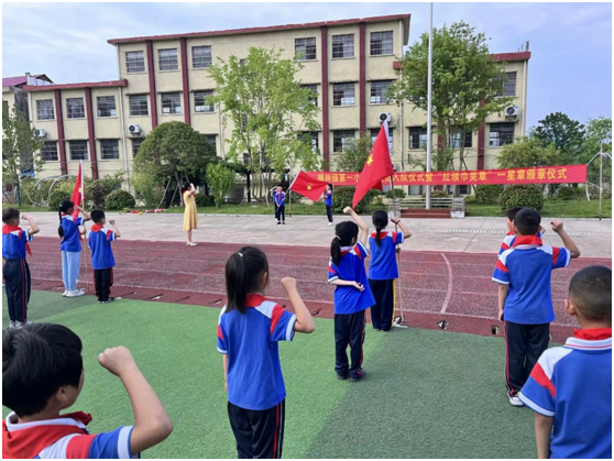 ——隨縣柳林鎮(zhèn)第一小學(xué)舉行新隊(duì)員入隊(duì)暨紅領(lǐng)巾獎(jiǎng)?wù)乱恍钦陋?jiǎng)?wù)骂C章儀式