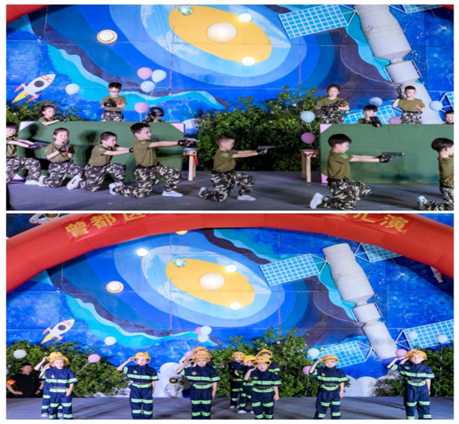 在這個閃亮的舞臺上,一個個精心準(zhǔn)備的節(jié)目,一位位落落大方的小演員,一件件精挑細(xì)選的服裝道具,給大家?guī)砹速p心悅目的美感與精彩。本次匯演節(jié)目形式多樣,精彩紛呈,有舞蹈、歌伴舞、情景劇、歌曲串燒、角色扮演,既有對太平盛世的歌頌,又有對未來的美好憧憬,有對軍人無畏品質(zhì)的贊美,也有傳統(tǒng)文化的呈現(xiàn),現(xiàn)場觀眾席中不時爆發(fā)出陣陣熱烈的掌聲。