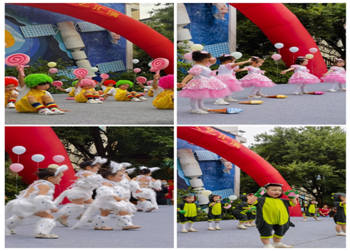 小班的寶寶們也毫不遜色,第一次登上舞臺,面對這么多觀眾,不膽怯不退縮,勇敢地表現(xiàn)自我?蓯鄣谋砬、動作、服裝把現(xiàn)場觀眾的心都萌化了,情不自禁地為他們鼓掌!