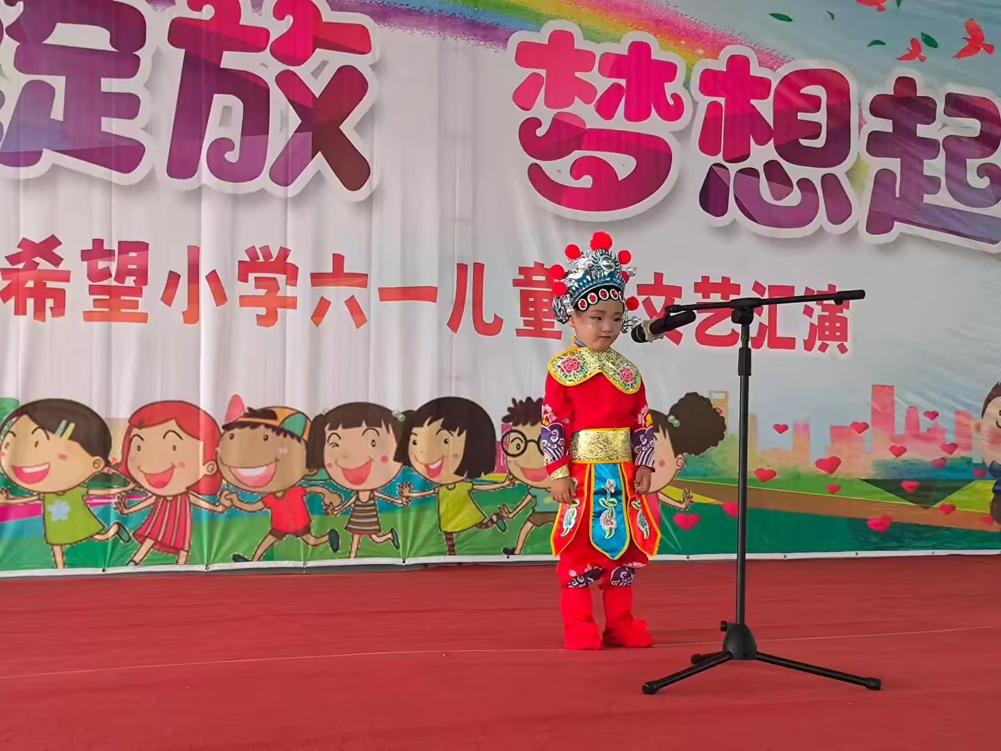 寬大的舞臺(tái),精美的幕布,渲染著節(jié)日的氛圍。孩子們身著節(jié)日的盛裝,帶來了精心準(zhǔn)備的節(jié)目,既有傳統(tǒng)戲曲的童聲演繹,也不乏現(xiàn)代舞蹈的活力四射,更有令人捧腹大笑的少兒情景劇等等,皆展現(xiàn)出新時(shí)代少年兒童的多才多藝和蓬勃朝氣。