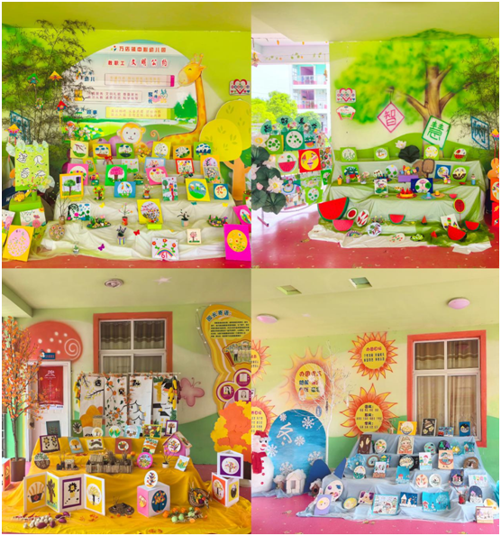 為了此次藝術(shù)節(jié)活動(dòng),老師們帶領(lǐng)幼兒,發(fā)動(dòng)家長(zhǎng),精心制作出具有奇思妙想且富有創(chuàng)意的美術(shù)作品,展臺(tái)以“四季”為主題,豐富多彩的作品靈動(dòng)活潑,充滿(mǎn)生活氣息,富有童趣和生命力,讓觀眾深深地感受到童年的快樂(lè)和美好!