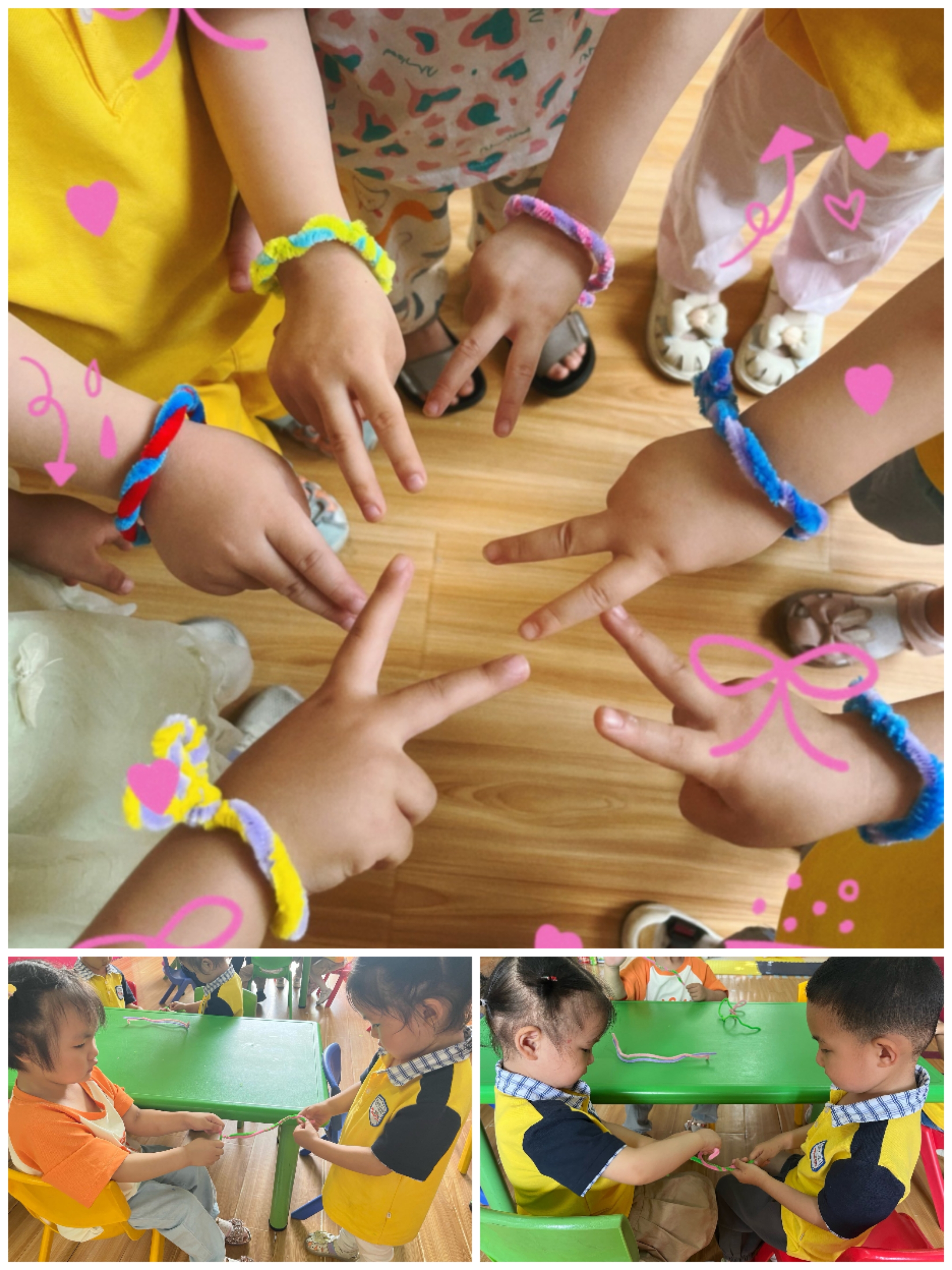 幼兒動手制作五彩繩、端午扇和艾葉香囊、掛飾,每一件手工作品都寄托了孩子對生活的美好祝愿。