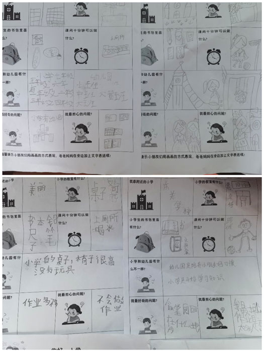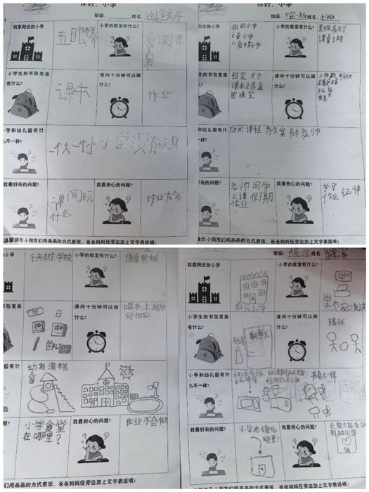 一次小學(xué)之旅,解答了孩子們心中的疑惑,同時(shí)也在他們的心里,播撒了一顆顆期待的種子。回到幼兒園,孩子們意猶未盡,你一言我一語,暢談自己在小學(xué)里的發(fā)現(xiàn)。他們把自己看到的、聽到的、感受到的用文字符號(hào)和圖案表現(xiàn)出來,與參觀前“我心目中的小學(xué)”形成聯(lián)結(jié),孩子們對(duì)小學(xué)生活又多了一份了解。