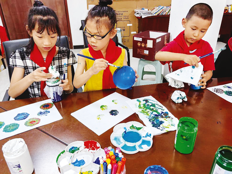 色彩是孩子眼中“最美的風景”,活動中,社工老師為孩子們準備了各種顏色的丙烯顏料、氣球、氣泡膜、畫筆等材料,引導孩子們想象自己要畫什么,在腦海中構(gòu)造出創(chuàng)作的畫面。有的孩子畫彩虹玫瑰,有的孩子畫心愛月季,有的孩子畫藍天云朵……創(chuàng)作中,孩子們充分發(fā)揮自己的想象力、創(chuàng)造力,用他們手中的畫筆創(chuàng)繪出屬于自己的、獨特的作品,用創(chuàng)意點亮生活。