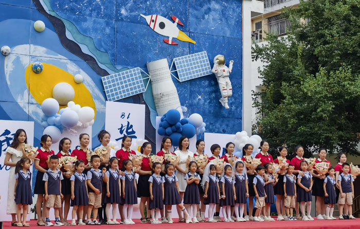 孩子們?cè)诶蠋煹膸ьI(lǐng)下走過(guò)成長(zhǎng)門,走向絢爛美好的未來(lái)。