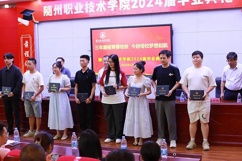 典禮在莊嚴(yán)的國歌聲中拉開序幕。黨委學(xué)生工作部部長鐘守兵宣讀了《關(guān)于表彰2024屆優(yōu)秀畢業(yè)生的決定》。校領(lǐng)導(dǎo)為優(yōu)秀畢業(yè)生代表頒發(fā)了榮譽證書,為2024屆畢業(yè)生代表頒發(fā)了畢業(yè)證書。