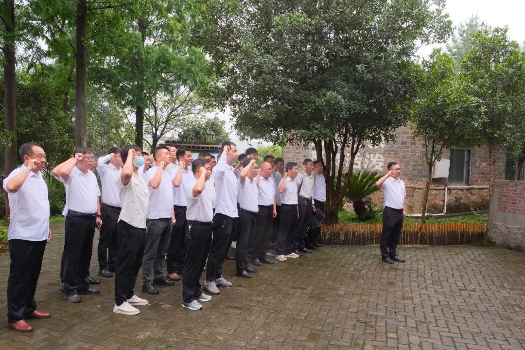 “我志愿加入中國(guó)共產(chǎn)黨,擁護(hù)黨的綱領(lǐng),遵守黨的章程,履行黨員義務(wù),執(zhí)行黨的決定……”在莊嚴(yán)肅肅穆的江漢公學(xué)紀(jì)念碑前,全體黨員干部冒著雨,懷著無比激動(dòng)的心情,高舉右手,高聲重溫入黨誓詞,重憶入黨初心,再次感受作為共產(chǎn)黨員的責(zé)任感和使命感。