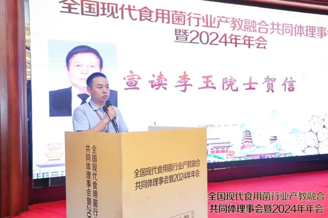 湖北省食用菌協(xié)會秘書長龔鈺華宣讀李玉院士賀信